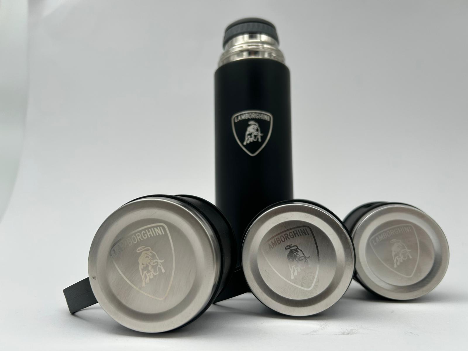 Lamborghini Laser Logo Thermos Set 500 ml – Insulated Flask with 3 Cups